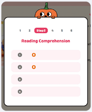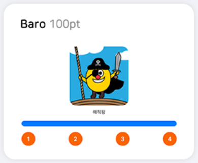 포인트 구간별 리딩유닛을 획득할 수 있으며, 각 캐릭터가 학습 보조 캐릭터로 등장해 학습에 재미를 더해 줍니다.