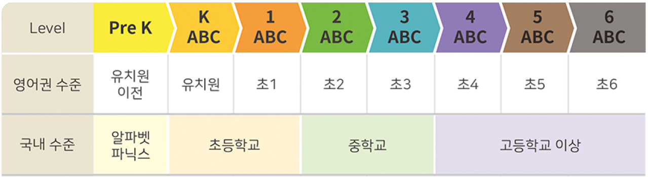 22단계의 체계적 레벨 구성을 가지고 있으며, 알파벳부터 클래식까지의 모든 레벨 학습이 가능합니다.